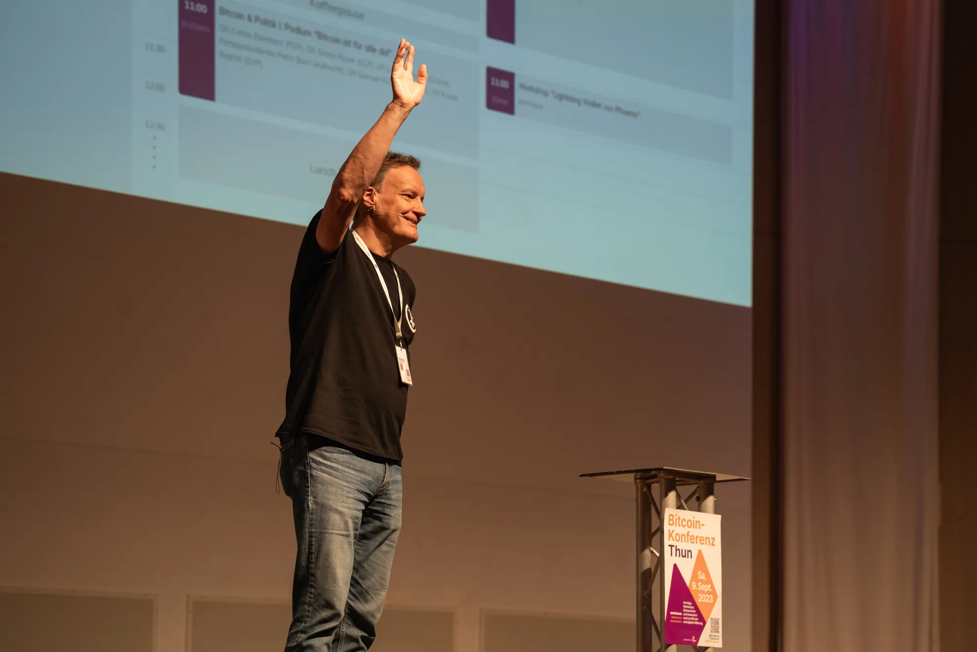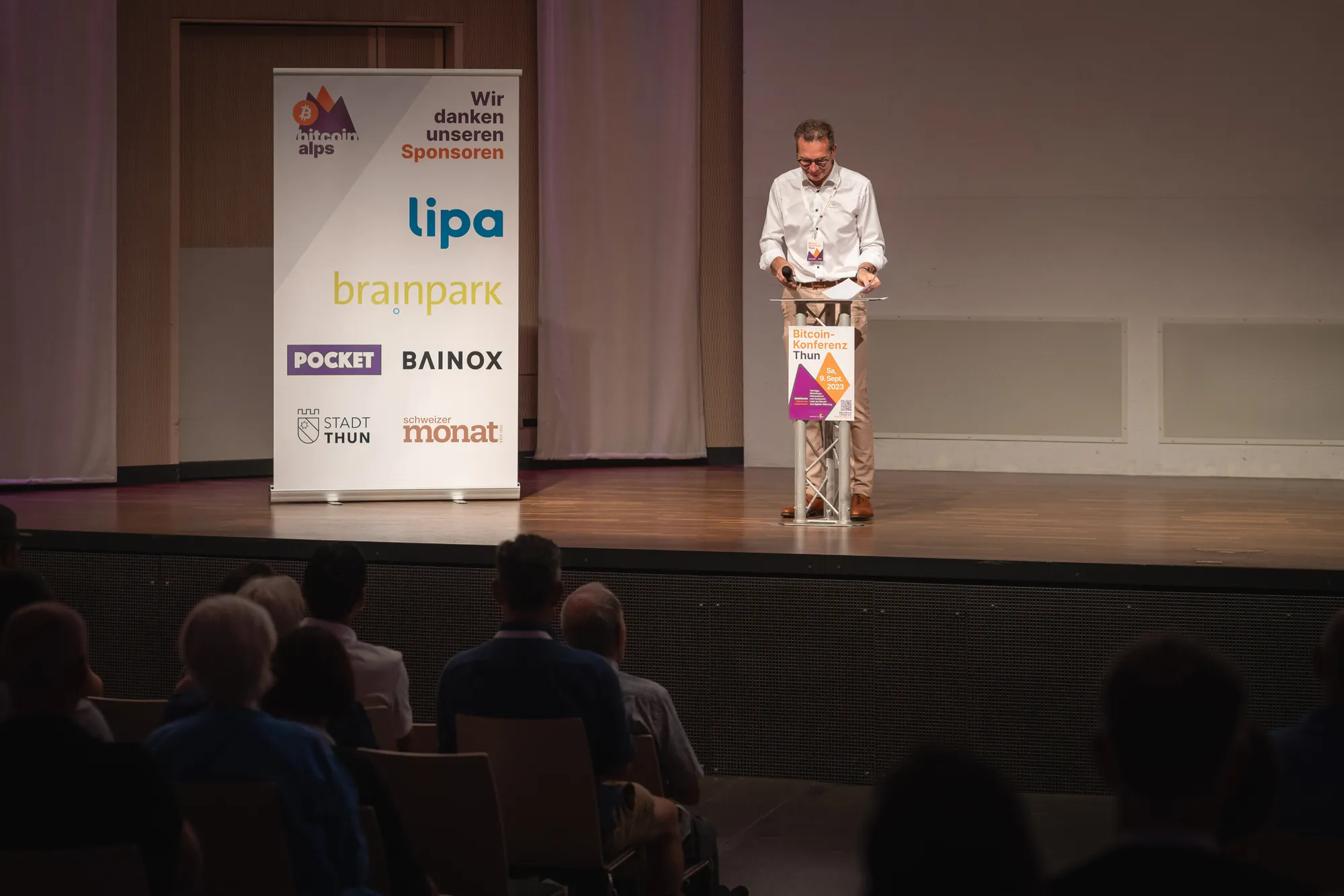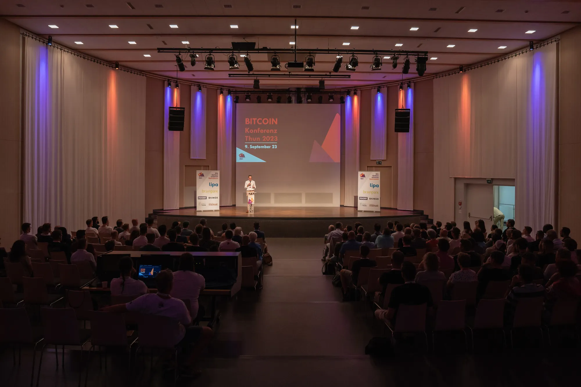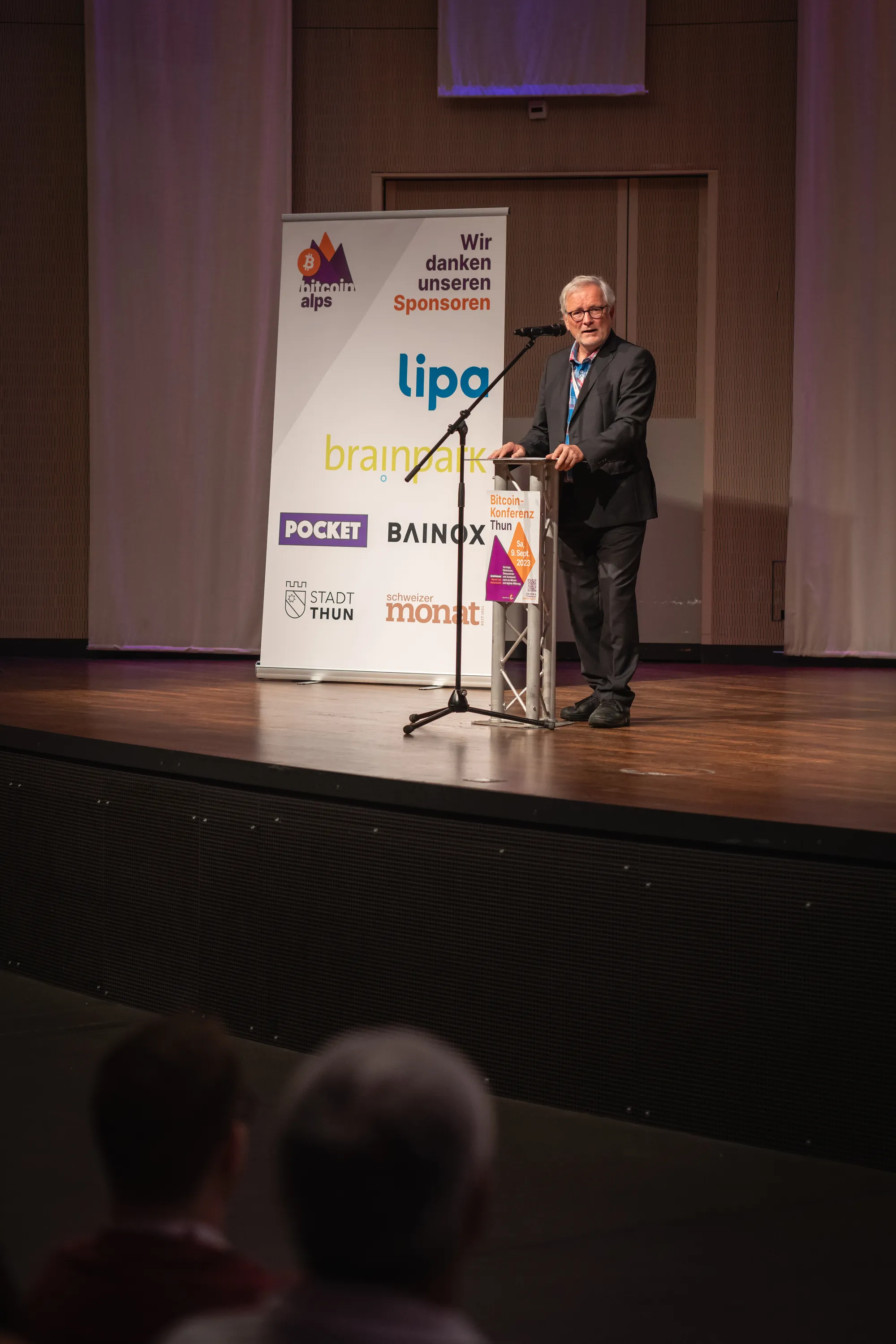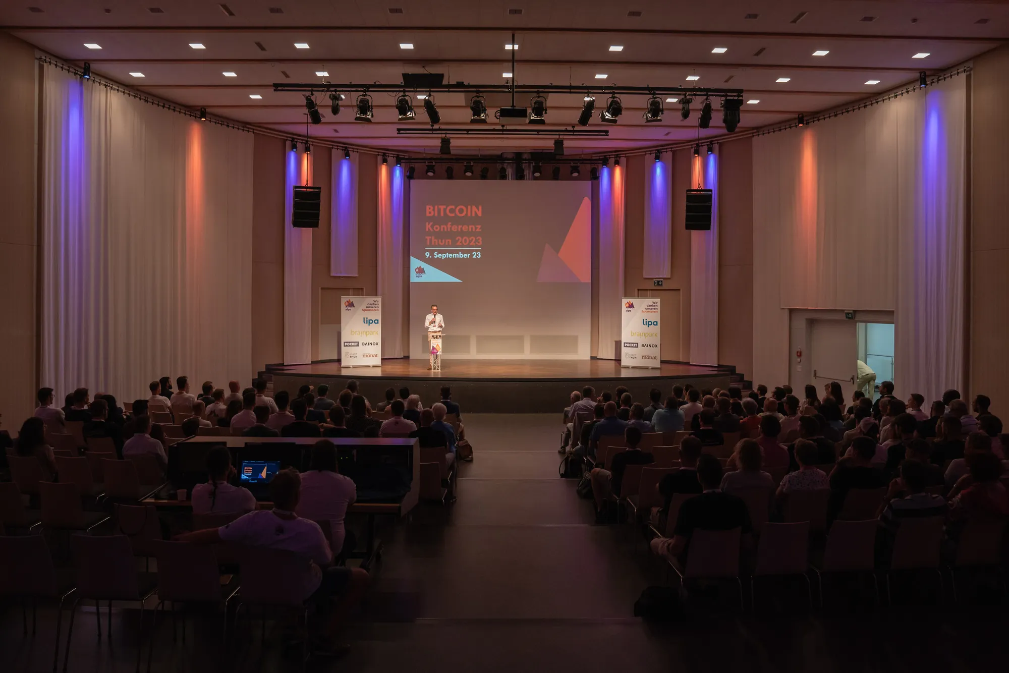 Vor ausverkauftem Haus (200 Besucher) eröffnete Raphael Lanz, Stadtpräsident von Thun, zusammen mit Manfred Locher, Stadtratspräsident von Thun, die erste Bitcoin Konferenz im Kanton Bern. Moderiert wurde die Konferenz durch Ronnie Grob, Chefredaktor des Magazins «Schweizer Monat». Das Publikum zog Gäste aus der ganzen Schweiz und sogar Deutschland an, die im Bereich Bitcoin bereits erfahren sind oder auch Neulinge, die sich ein Bild des digitalen Geldes machen wollten. Im durchaus breite Publikum fanden sich Experten, interessierte Partner:innen, Eltern, Kinder und Jugendliche.